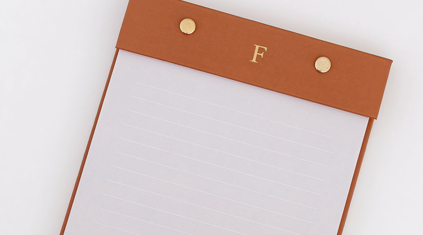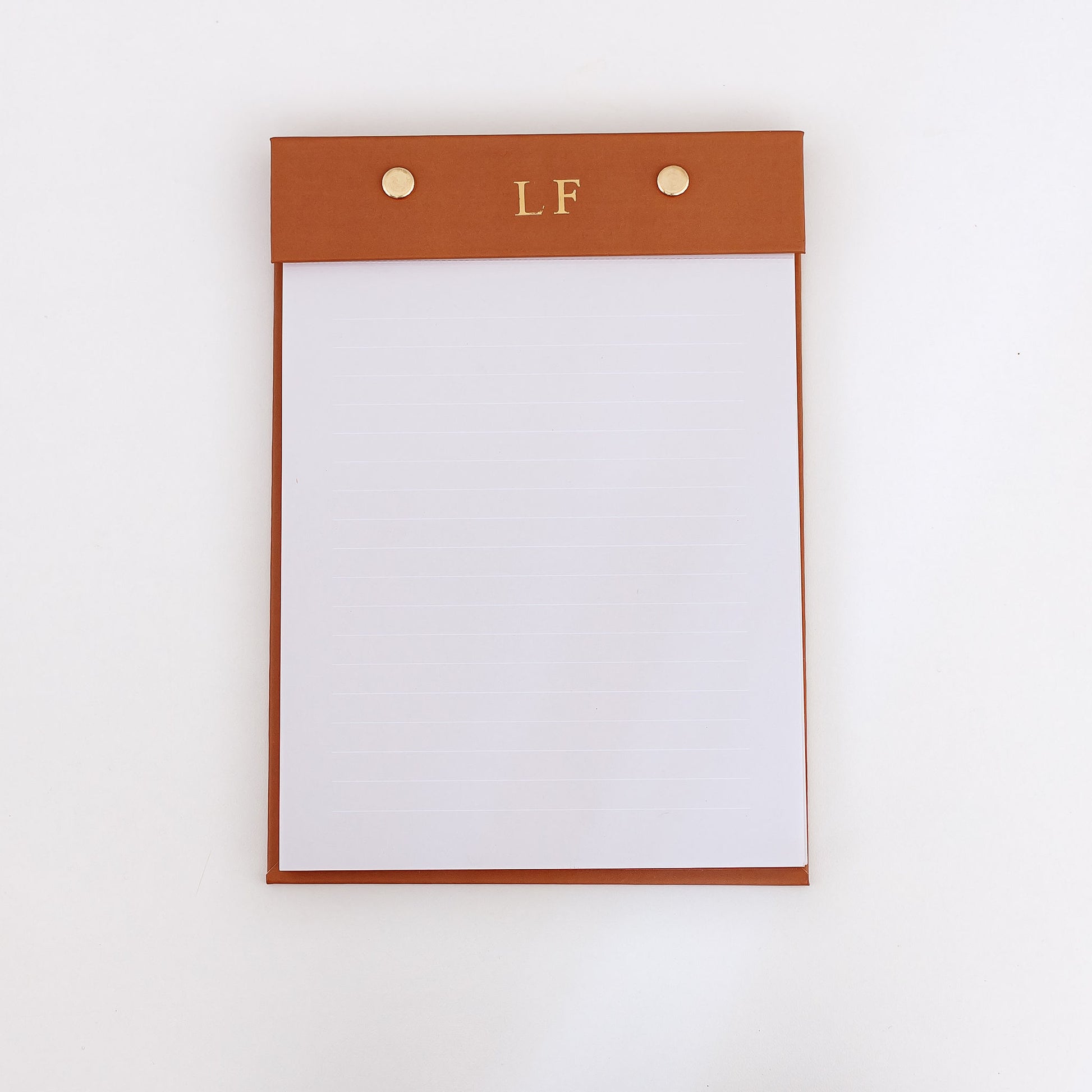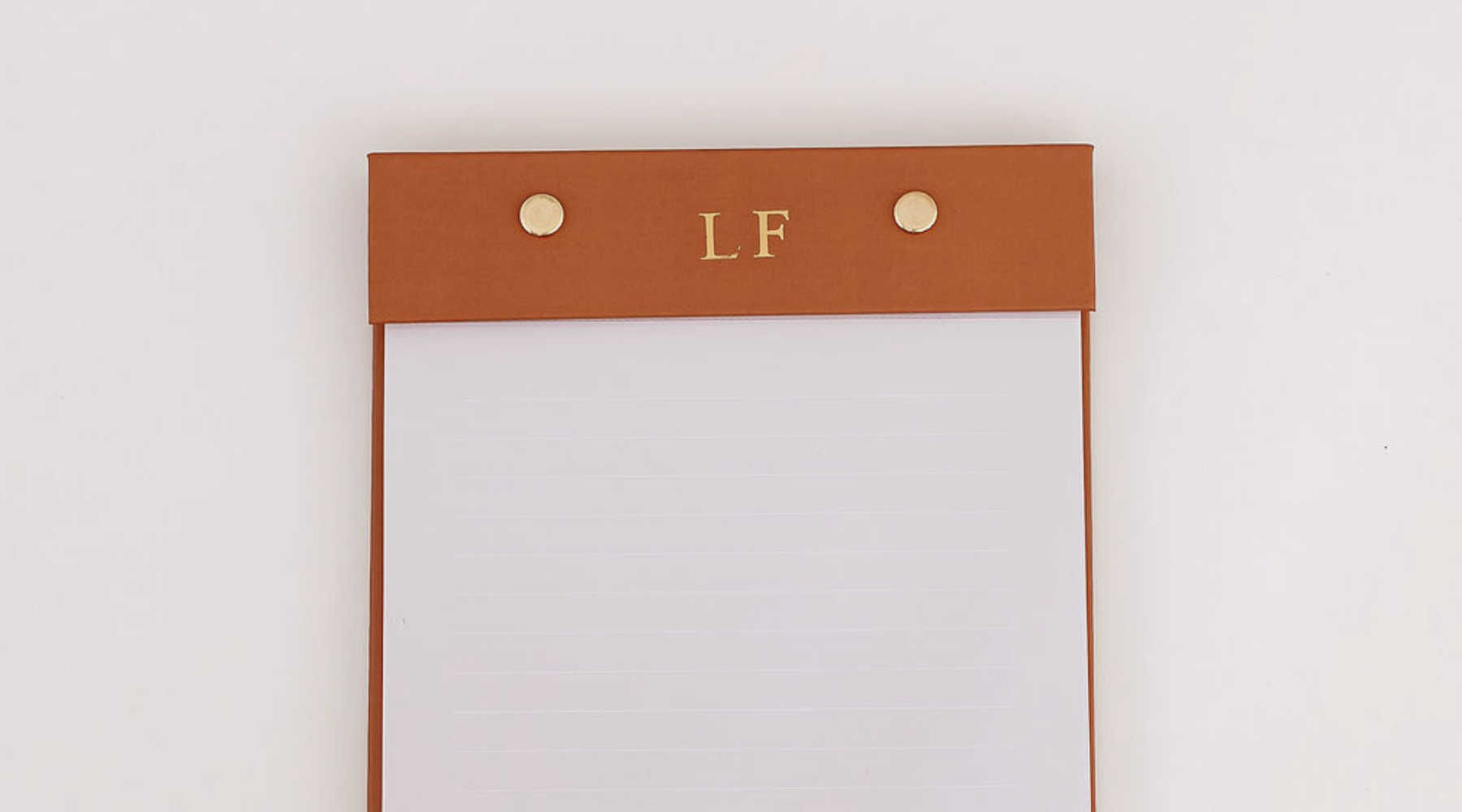 Os prendedores dourados mantém suas anotações seguras e adiciona um toque sofisticado ao bloco de notas. Aproveite para personalizar o topo com iniciais, também em dourado, e deixar o bloco com a sua cara!