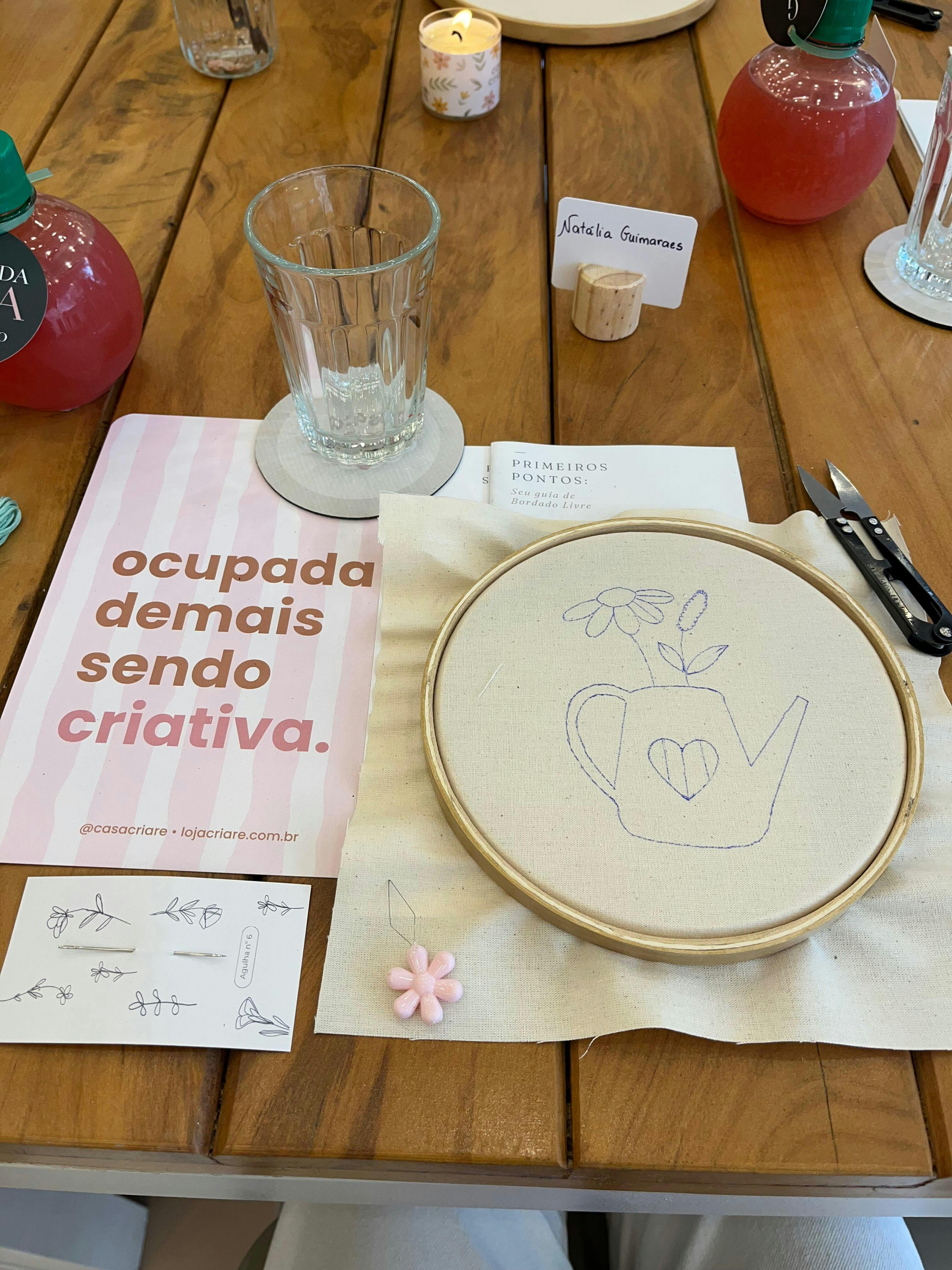 A experiência foi incrível, a aula é super agradável e um ambiente muito acolhedor e gostoso. Tudo preparado pra ter um tempo de qualidade e aprender um novo hobby. A professora é super didática e já dá pra aprender muita coisa na aula e sair bordando. Amei muito, poderia durar o dia inteiro.