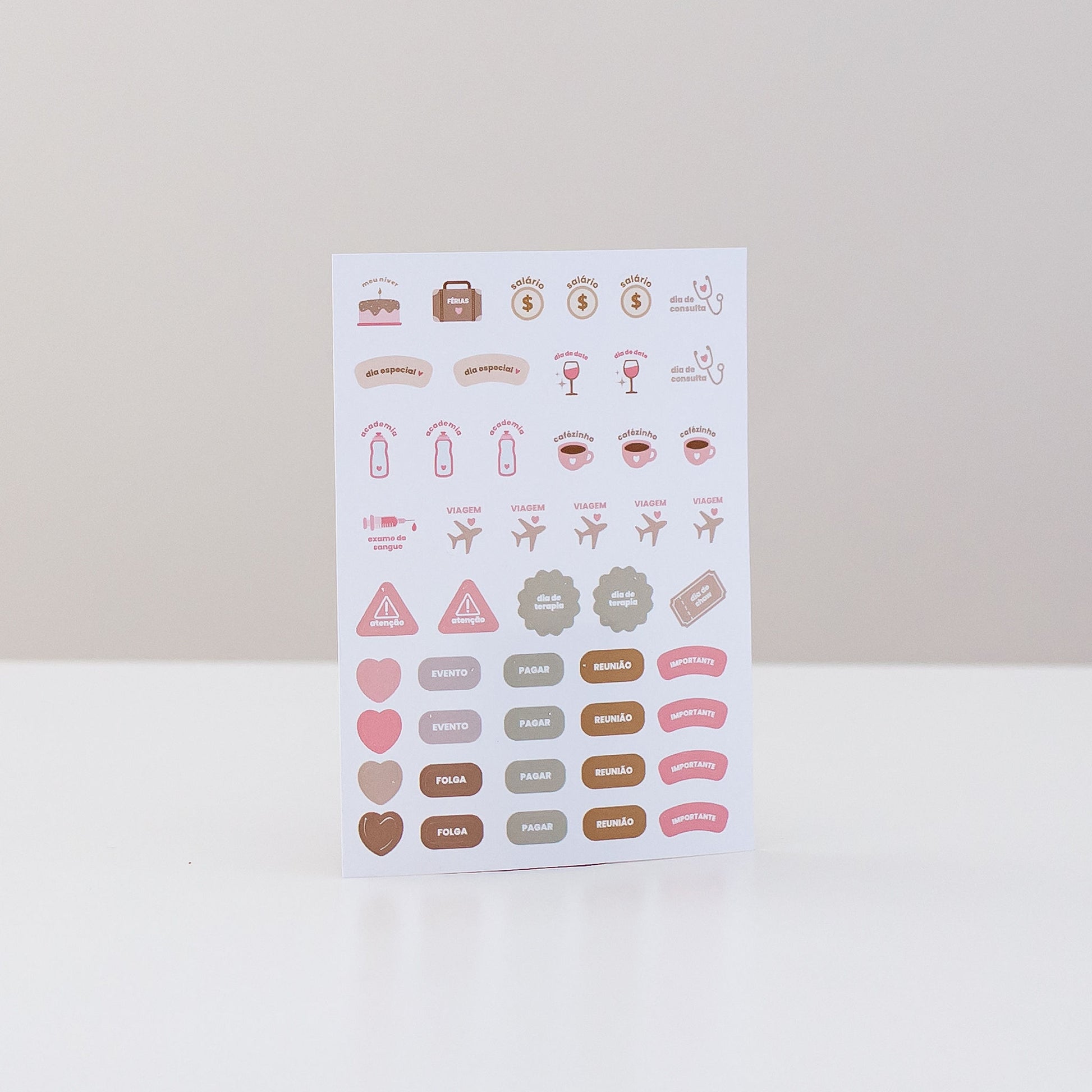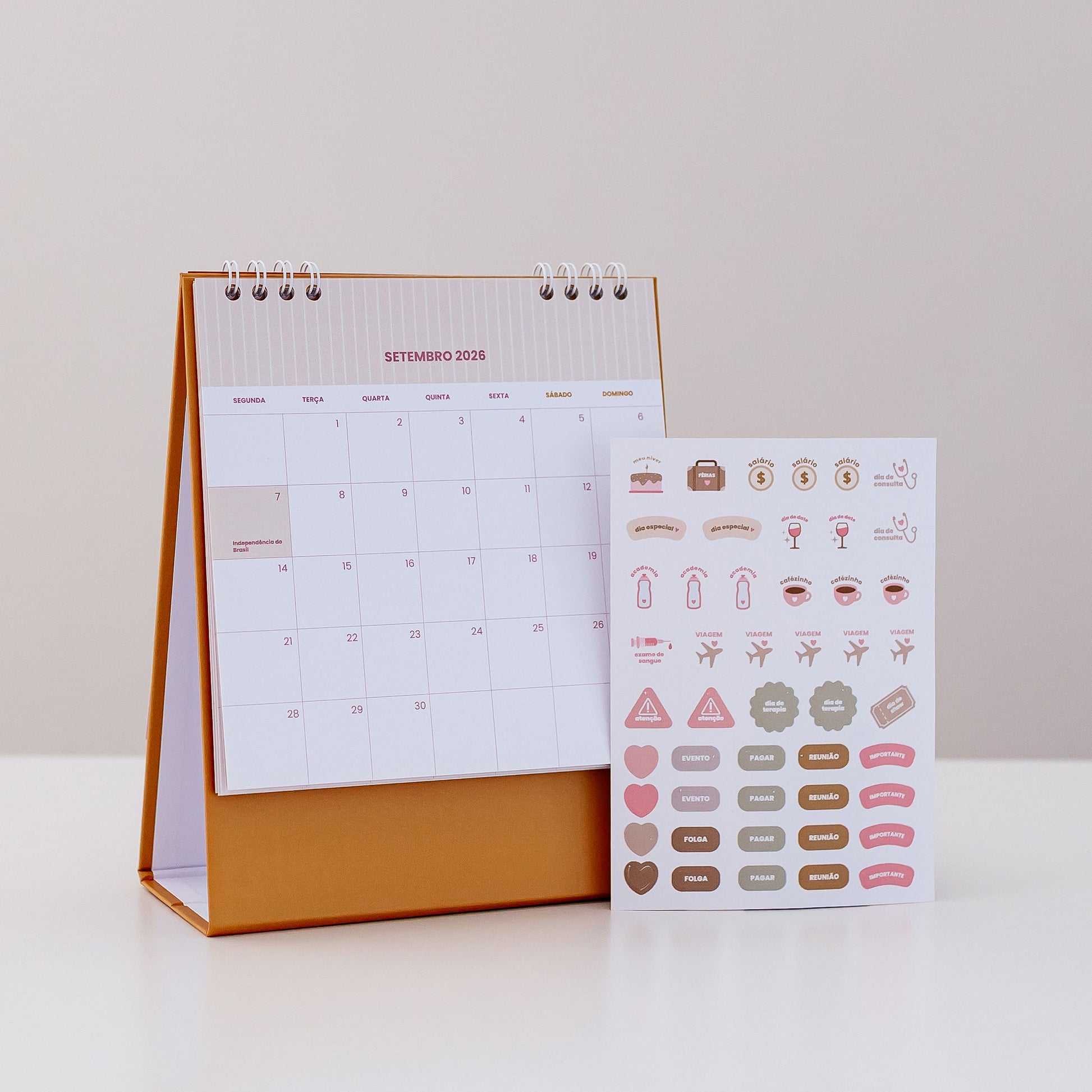 Decore suas tarefas com a cartela adesiva que acompanha o calendário! Os adesivos foram pensados para marcar compromissos, destacar prioridades e deixar sua rotina mais fofa e organizada.