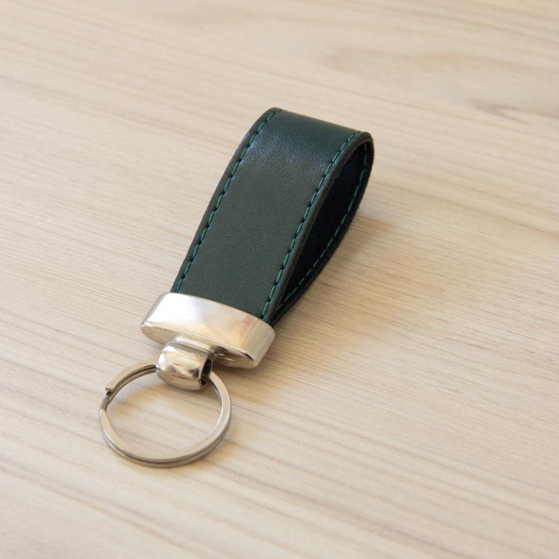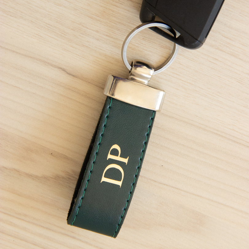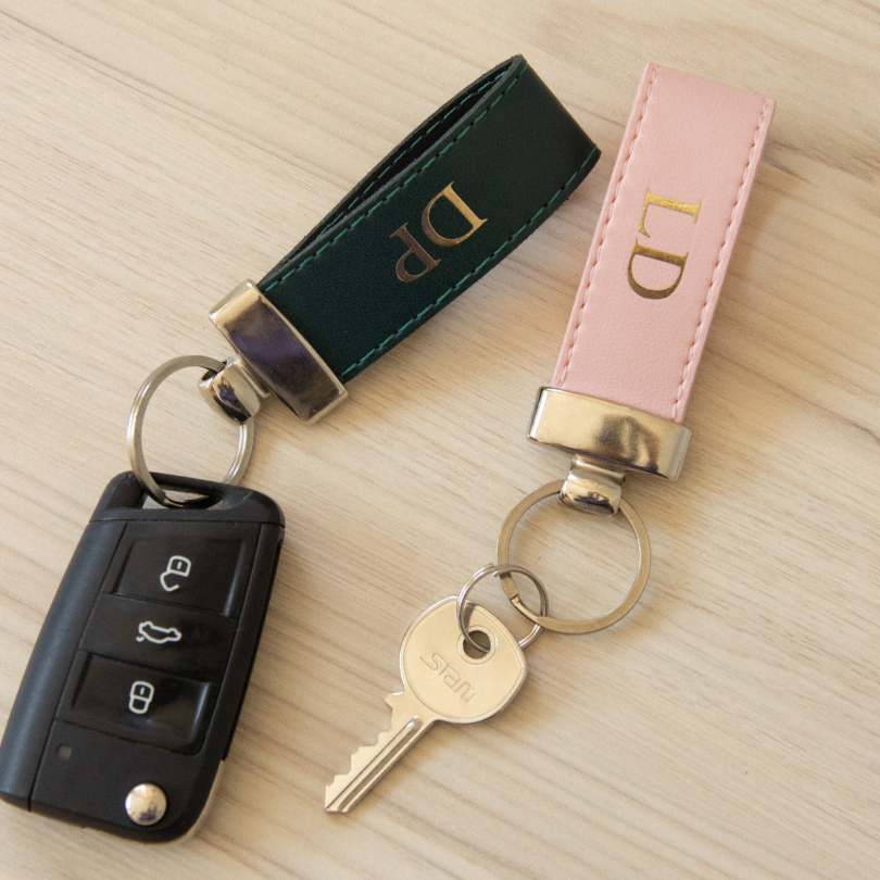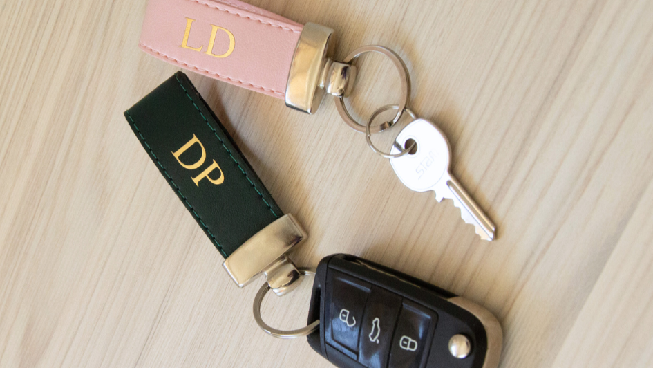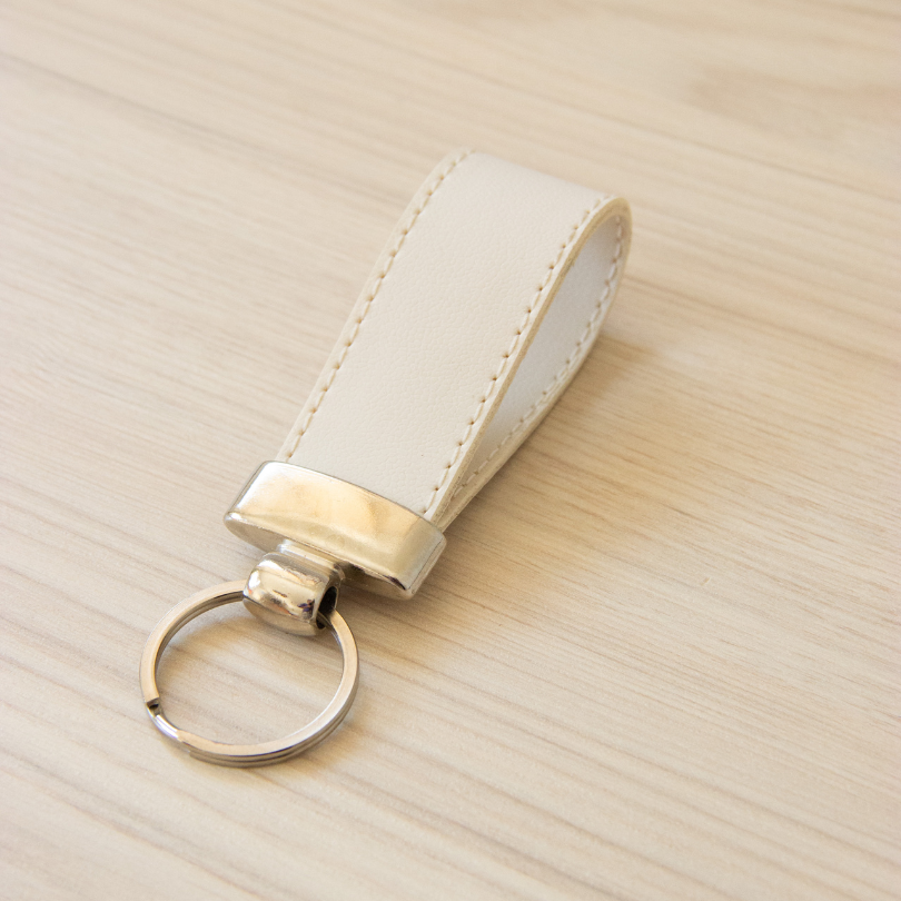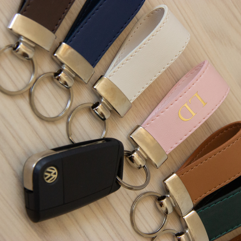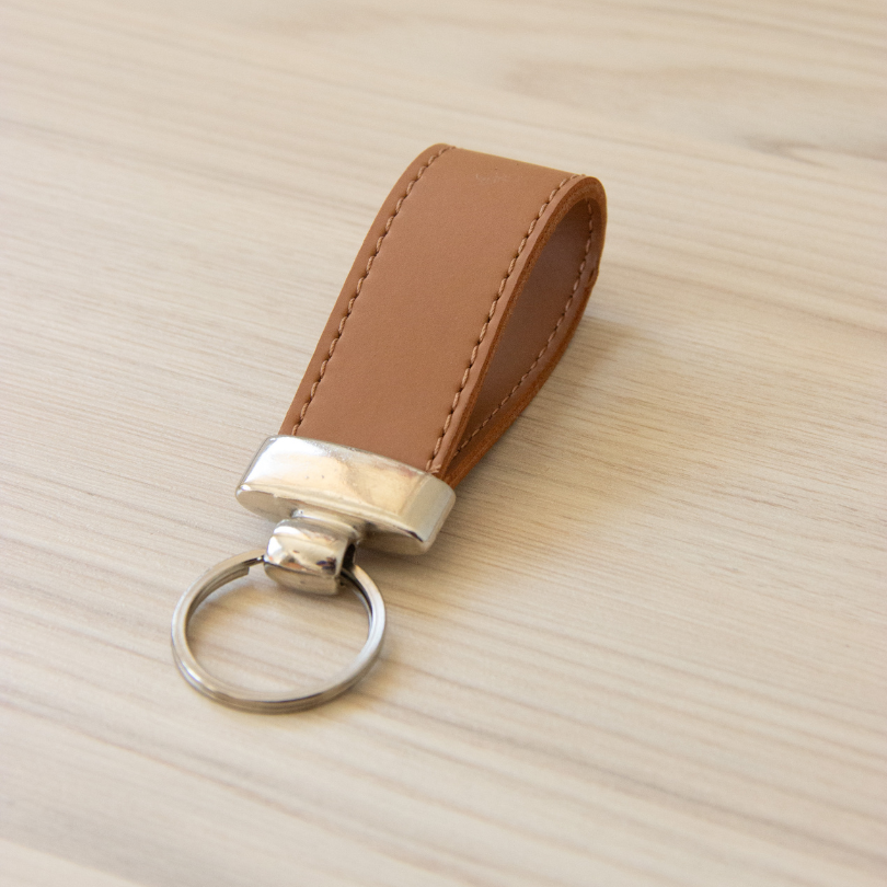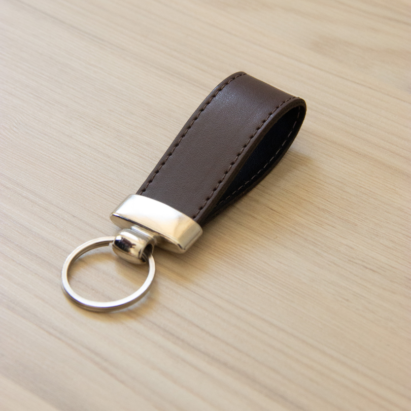 Feito em couro PVC de alta qualidade, o chaveiro une elegância e durabilidade.