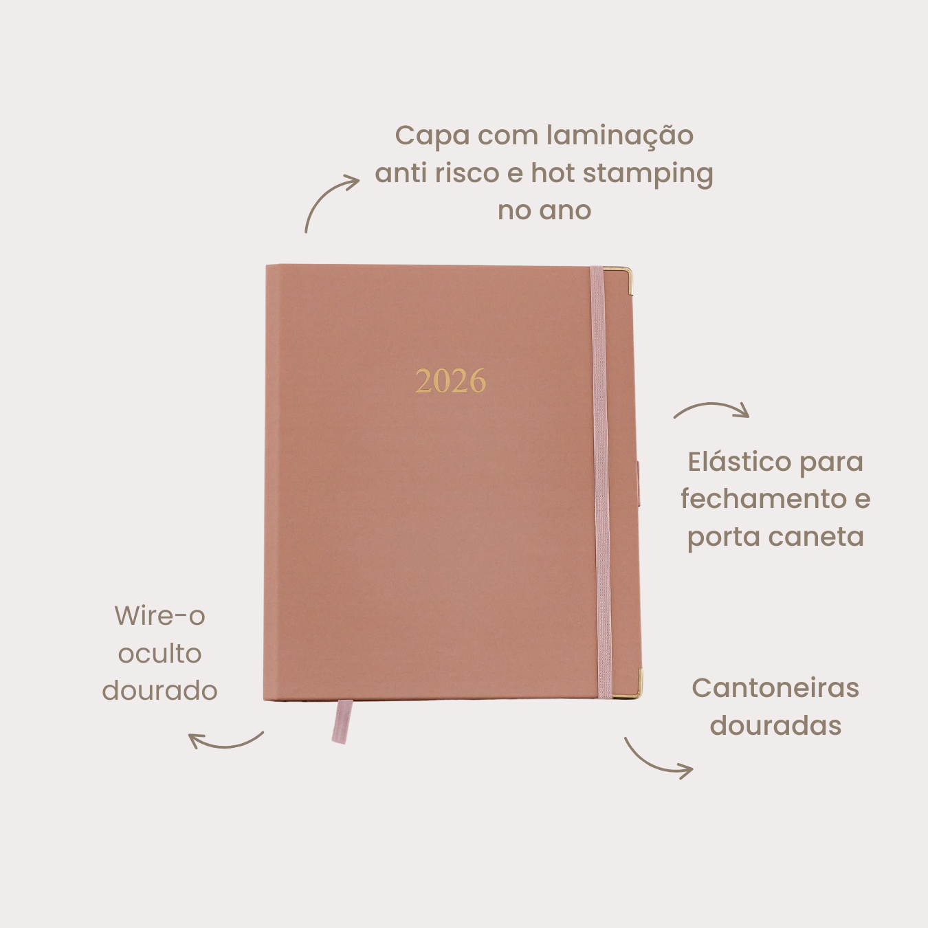 O Mini Planner celebra 10 anos de história e, entre algumas mudanças, é o queridinho para quem ama um planner compacto. Pra 2026, a partir das sugestões de vocês, decidimos pelo Planner em tamanho A5, wire-o oculto com visão semanal em formato horizontal pontilhado. Será um ano ano doce sem ser enjoativo e neutro sem ser básico como a nossa capa Choconilla <3