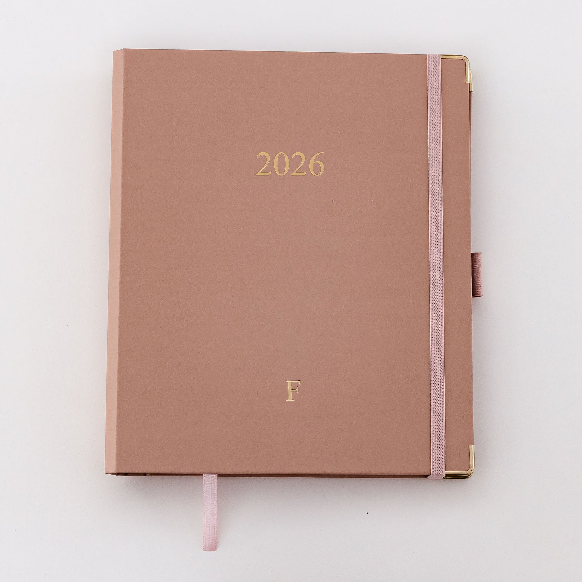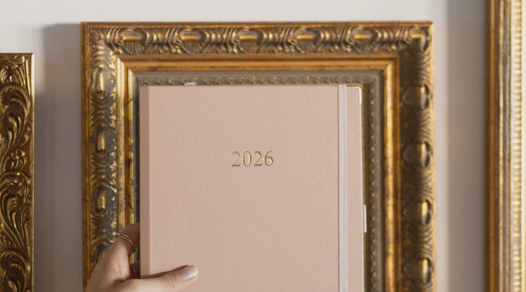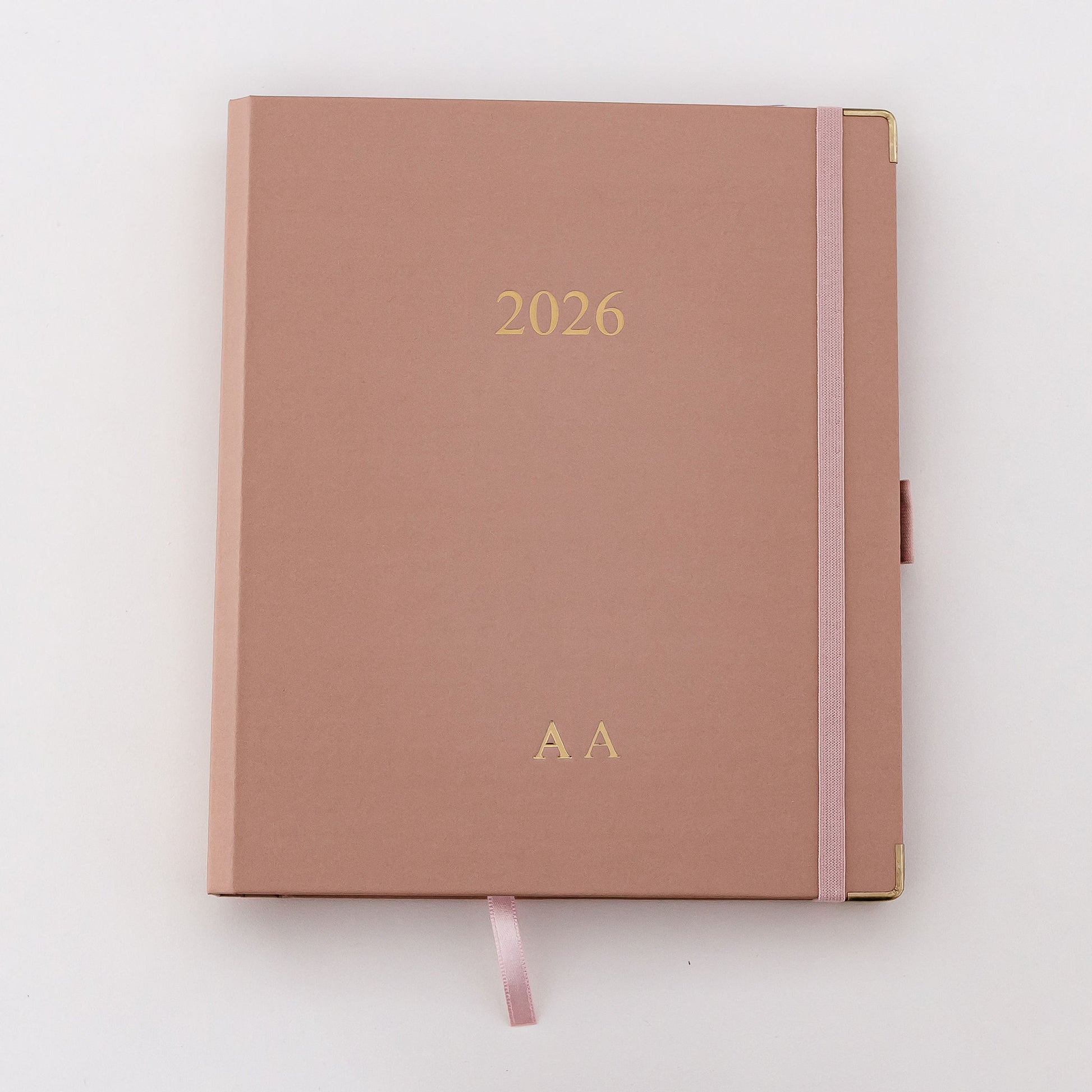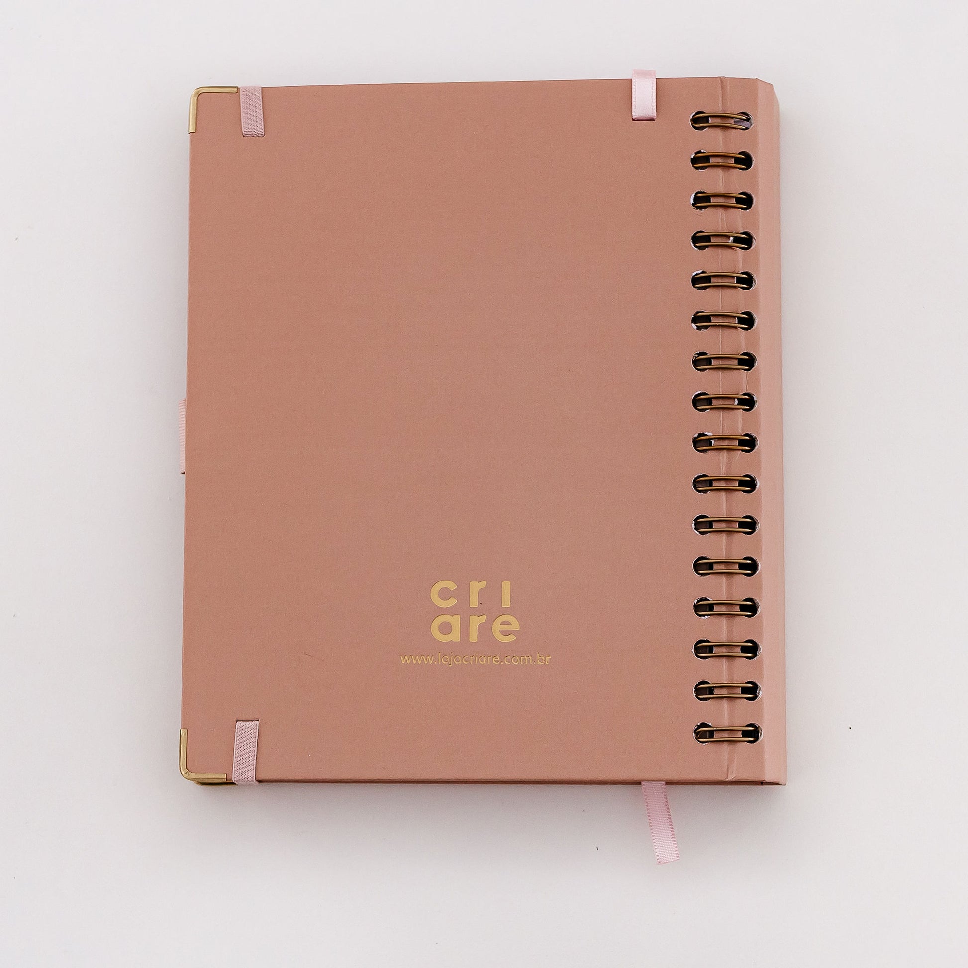 Coloque até duas iniciais na capa, deixando o planner com a sua cara! As cantoneiras douradas e o elástico para fechamento garantem acabamento resistente com qualidade Criare no seu Mini Planner 2026.