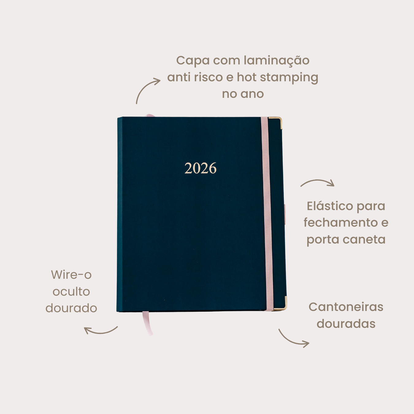 O Mini Planner celebra 10 anos de história e, entre algumas mudanças, é o queridinho para quem ama um planner compacto. Pra 2026, a partir das sugestões de vocês, decidimos pelo Planner em tamanho A5, wire-o oculto com visão semanal em formato horizontal pontilhado. Será um ano elegante e sofisticado como a nossa capa Petróleo <3