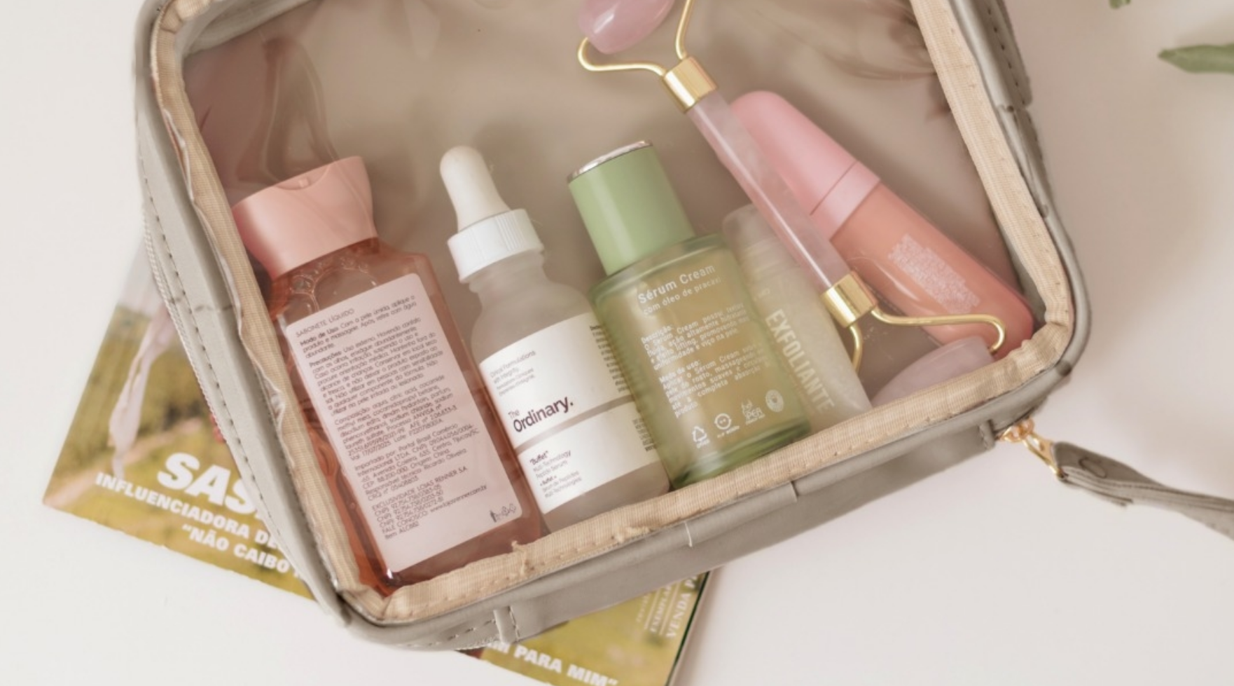 Você está pronta pra ter uma necessaire de viagem que vai virar sua companheira inseparável? A nossa necessaire não só facilita transportar seus itens essenciais de beleza e cuidados pessoais, como também eleva seu estilo e praticidade. Vem ver os detalhes: